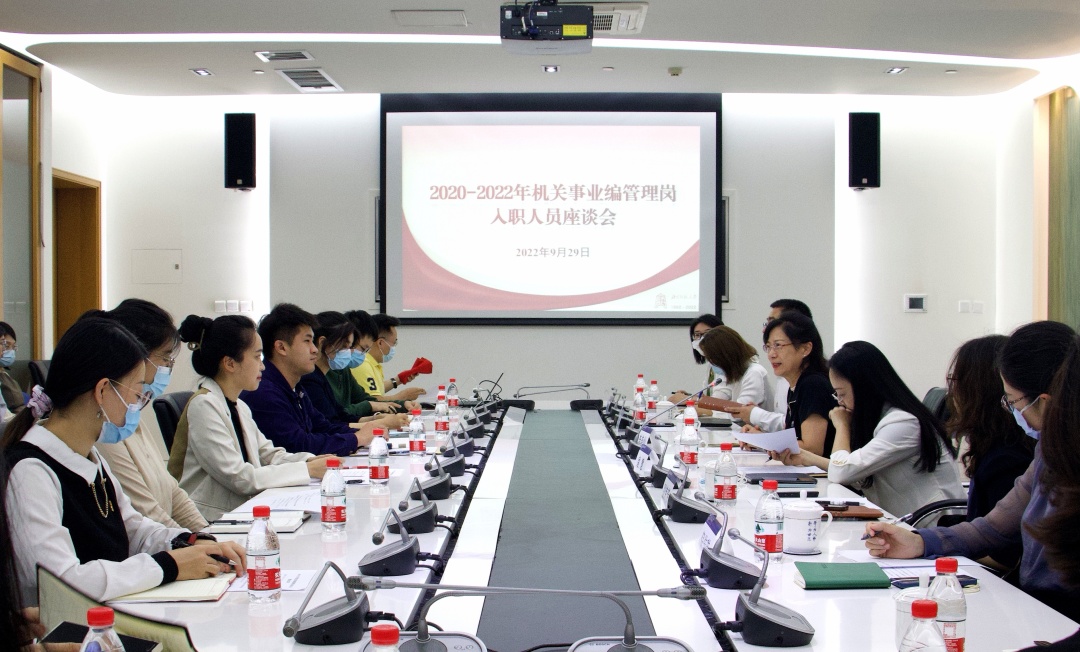 9月29日,2020-2022年度机关事业编管理岗入职人员座谈会在京师学堂第二会议室举行。党委教师工作部部长袁慧、人才人事处处长王洛忠、信息办/信息网络中心主任别荣芳、校工会副主席周静敏、校团委副书记倪佳琪、机关党委宣传委员李林、机关团总支书记荣婷婷出席座谈会,近30名2020-2022年度机关事业编管理岗入职人员参加座谈。会议由机关党委常务副书记李美仙主持。